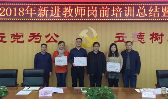 会上,张荣庆首先对2018年新进教师听课情况作了简单总结,他肯定了老师们取得的成绩,也指出了存在的不足。朱海霞、杨霈瑶代表新进教师作了发言,他们从自身工作经历和岗前培训的点点滴滴,表达了对学院领导关怀的感激之情。张建标宣读了表彰名单,刘义成、张新成、张建标向被评为先进的朱海霞、杨霈瑶和宁磊三位老师颁发了荣誉证书。